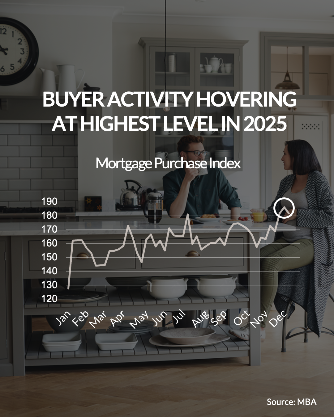 Now may be a better time to sell than you'd expect. Since mortgage rates have come down compared to their high earlier this year, more buyers are re-starting their home search. And here’s the data to prove it. This graph shows homebuyer activity is hovering at the highest level so far this year. More people are applying for home loans. And it’s already turning into more homes going under contract. That jump in activity opens up real opportunities for sellers right now. There’s a renewed sense of energy in the market going into 2026. And homeowners who decide to sell can ride that shift in momentum. If you want to get in on the action and get your house in front of these eager buyers, DM me.